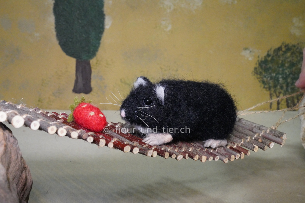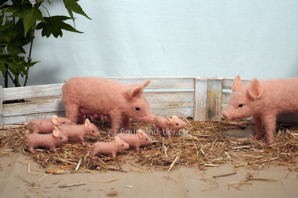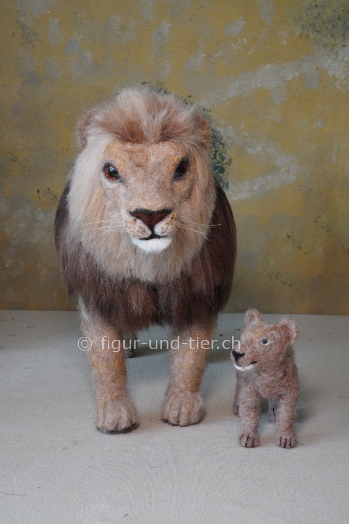 Die Tiere sind mit der Nadel gefilzt und haben innen ein bewegliches Gestell. Dadurch können sie in fast jede beliebige Haltung gebracht werden, wie beim echten Tier.